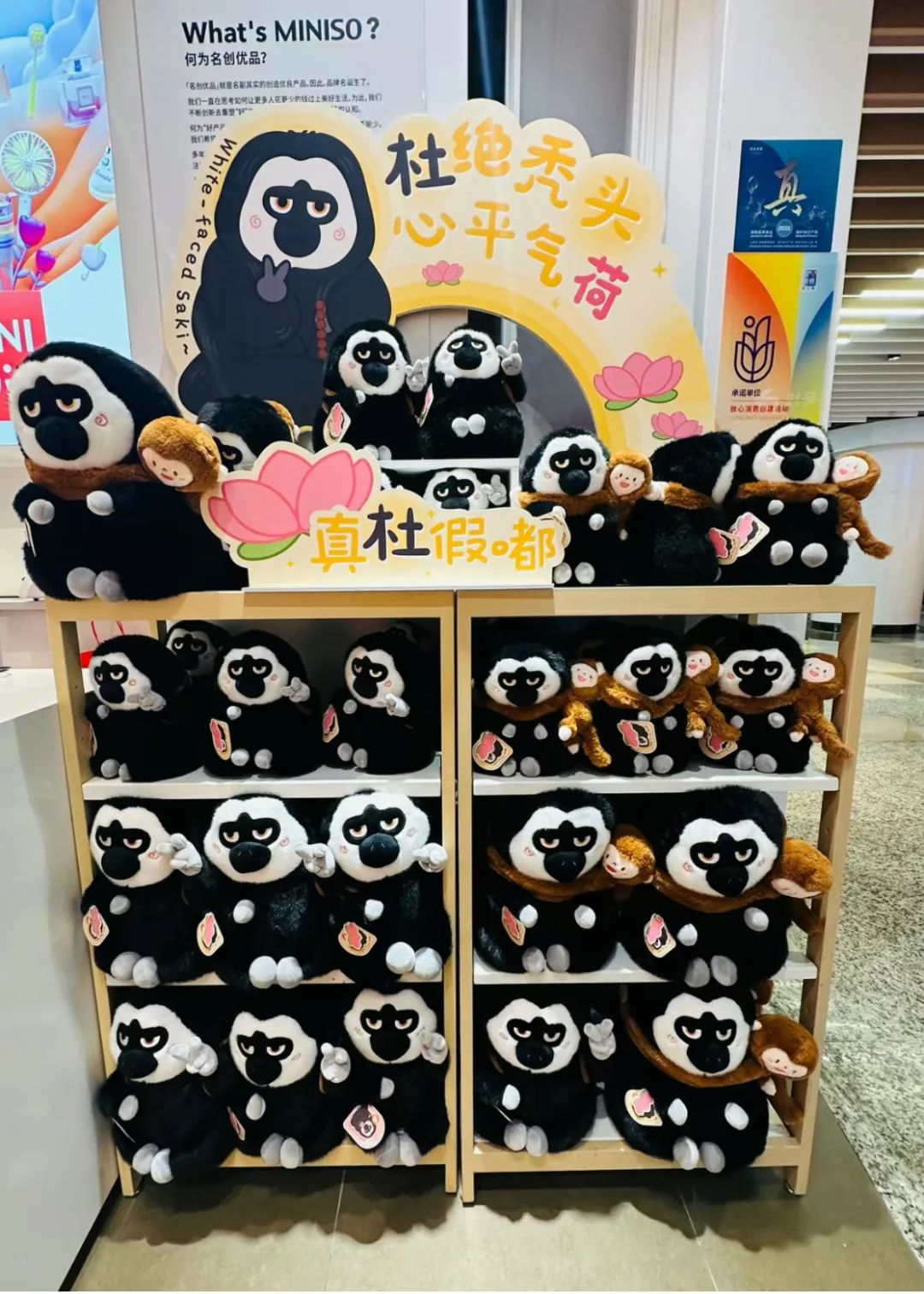 如果你走进名创优品,很难不注意到站满货架的“无脸男”白面僧猴。