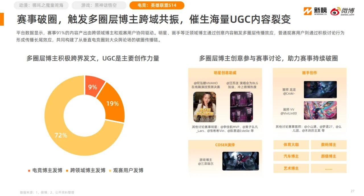 同时,微博为电竞选手、内容 KOL 提供的长期成长通道,使后者成为平台内容资产的重要组成,反向提升微博内容质量、社群粘性和产业影响力。
