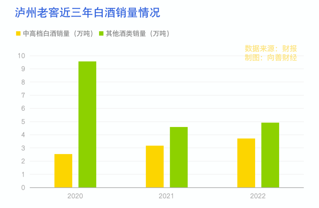 高端酒放量,带动了泸州老窖销售收入大幅增长。2020年到2022年泸州老窖中高档白酒销售收入从142亿增长到了221亿。