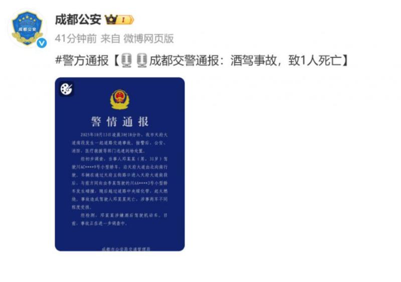 10月13日凌晨,成都天府大道仁寿视高段发生一起严重交通事故,据现场目击者拍摄视频显示,该车车身翻滚至对向车道并瞬间燃起明火,火势在短时间内迅速蔓延至全车。据悉涉事车辆为小米SU7。