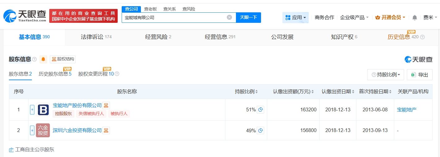 宝能城有限公司成立于2013年4月,法定代表人为王志芳,注册资本32亿人民币,经营范围包括投资兴办实业、自有物业租赁、经济信息咨询等。股东信息显示,该公司由宝能地产股份有限公司、深圳六金投资有限公司共同持股。