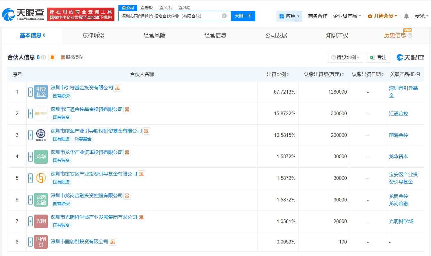 天眼查App显示,近日,深圳市国创引科创投资合伙企业(有限合伙)成立,执行事务合伙人为深圳市国创引投资有限公司,出资额189.01亿人民币,经营范围为以自有资金从事投资活动、创业投资,由深圳市引导基金投资有限公司、深圳市汇通金控基金投资有限公司、深圳市前海产业引导股权投资基金有限公司等共同出资。