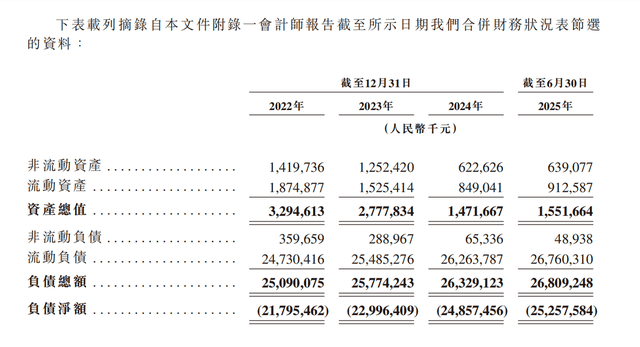 招股书显示,2025年6月底,公司账面净负债约253亿元,流动负债净额更高达258亿元。