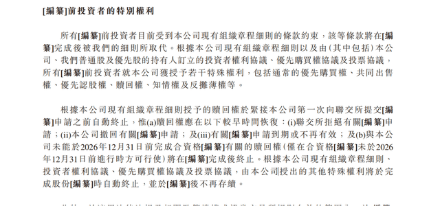 根据招股书中对于赎回权的解释,如公司未能于2026年12月31日前完成某些条件(按照上下文来看很可能是IPO),相关权利将自动恢复,届时公司可能会录得大额赎回负债。