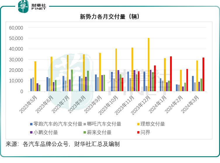 其他新势力也没闲着,哪吒L将于4月上市并交付;零跑(09863.HK)最近也发布新车C10,起售价12.88万元,同时发布全新C11、全新C01和全新T03。理想(02005.HK)3月份刚刚发布并开启交付MEGA——一款家庭用MPV,又将在2024年4月18日(明晚)发布L6。问界全新的M5也将在4月下旬开启预订……