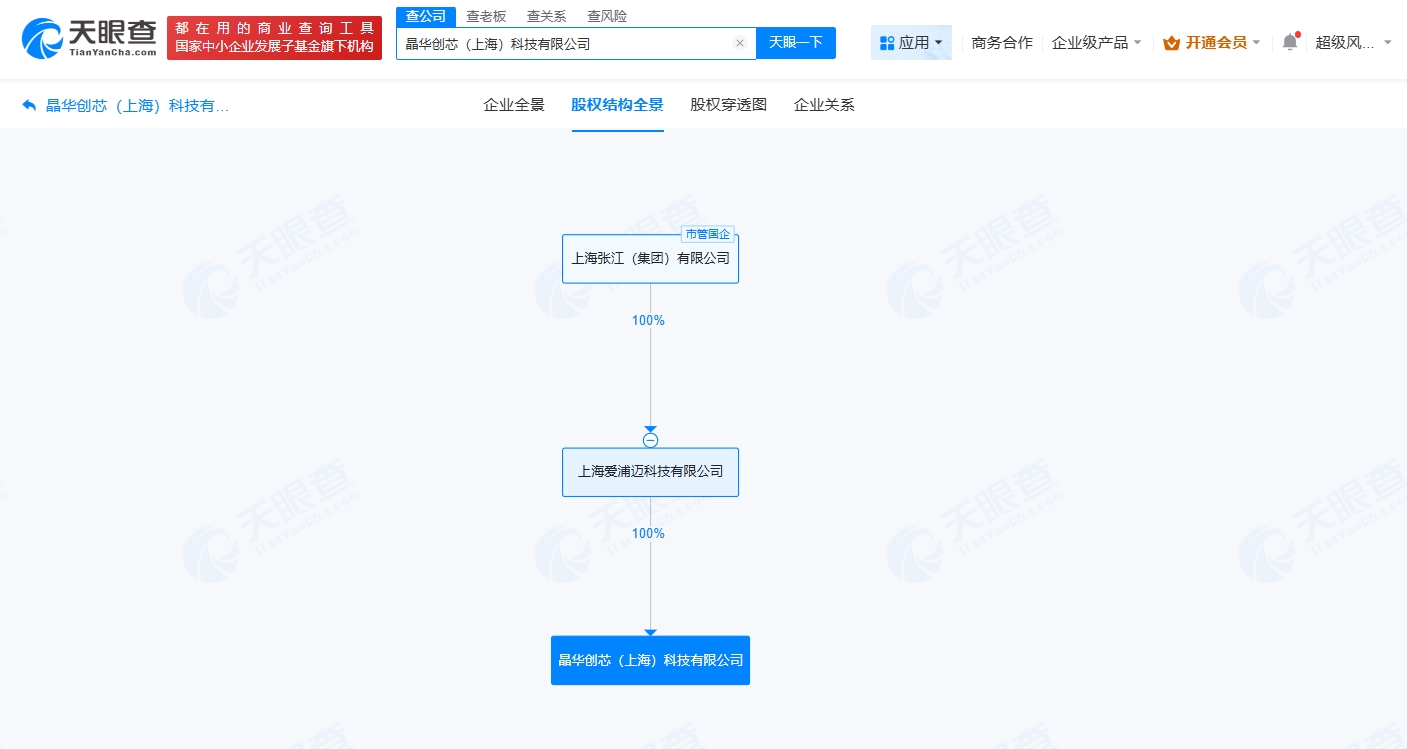 天眼查App显示,近日,晶华创芯(上海)科技有限公司成立,法定代表人为姜克,注册资本1亿人民币,经营范围包括电子元器件制造、半导体器件专用设备制造、仪器仪表制造、电子测量仪器制造等。股权全景穿透图显示,该公司由张江集团旗下上海爱浦迈科技有限公司全资持股。