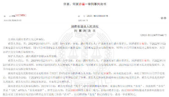 3月1日,中国裁判文书网公布的另一起诈骗案显示:2022年7月初,被告人许浪刷到赚钱短视频,并添加了一个叫“乐乐”的微信号。许浪按照“乐乐”的指示登录“飞机”APP加入“乐乐对接群”。“乐乐”告诉许浪登录58同城网站内部员工账号,获取应聘者信息,再以58同城网客服或者新维科技股份有限公司员工的身份,按“话术”打电话给应聘者问其是否需要找工作,让应聘者加“乐乐”指定的微信号,成功一单获利70元。