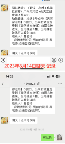 时间财经通过登录58同城网站注意到,杨小姐指控的这家在58同城招聘的公司成立于今年2月,但58同城招聘信息中显示为“名企”。当时间财经以求职者身份投递简历后,招聘方通过58同城官方消息沟通后,通过微信通知面试,面试地址与杨小姐签约的面试地址一致。