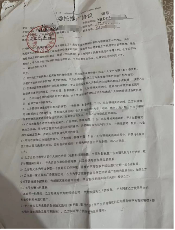 最终,杨小姐与广州犇孖文化传媒有限公司签署了一份《委托推广协议》,签约金额为34650元。