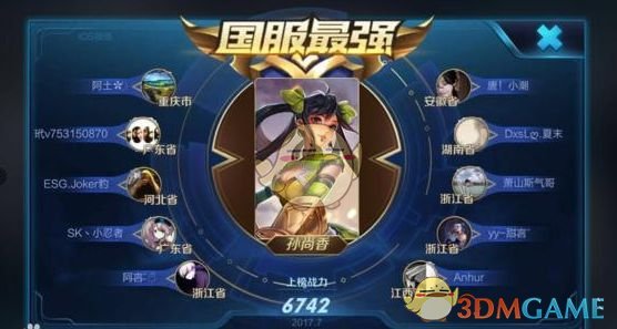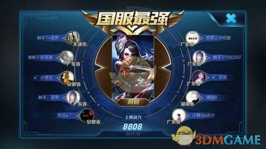 国服最强(全国):荣耀战力4000分以上