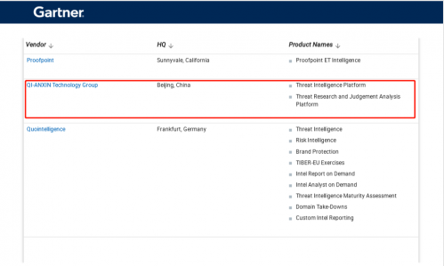 奇安信集团上榜Gartner威胁情报市场报告快讯