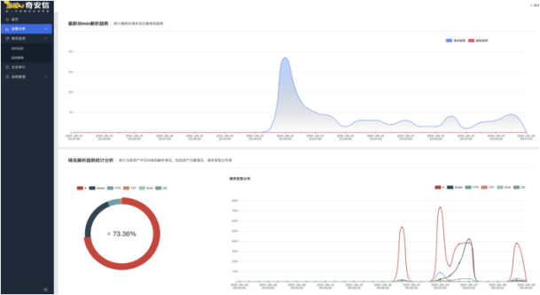 2、奇安信安全DNS服务。威胁情报中心与奇安信技术研究院共同打造了奇安信安全DNS(QDNS),提供集解析服务、监测服务、咨询报告为一体的SaaS化解决方案,直连省网核心路由器,秒级接入,具备业内顶尖的恶意域名检测能力,实时碰撞高精准威胁情报,向用户提供全面的分析报表,时延低、高可靠。