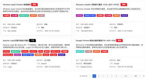 1、漏洞情报服务。致力于通过结合威胁情报为客户提供及时、全面、精准的漏洞信息,帮助客户以最快速度定位与自身环境相关的真正导致安全风险的漏洞,通过提供可操作的解决方案建议及时消除漏洞的威胁。