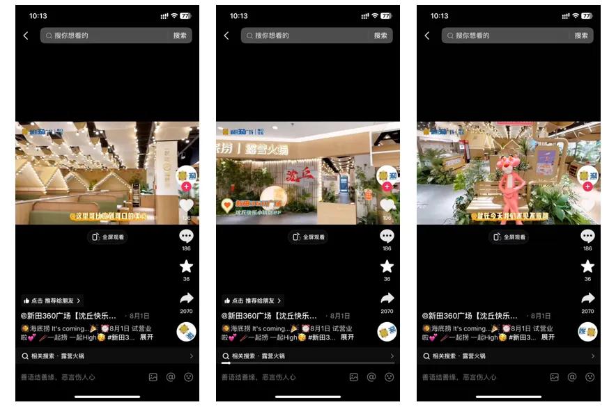 且对于很多县城青年来说,普遍具有高线城市的生活经历,这让很多高线城市品牌进入县域市场后,尝鲜以及凑热闹心态影响下,门店开业前期生意会比较火爆。比如说,今年8月份开业的周口市沈丘县海底捞新田360店,一个月时间就冲至当地抖音火锅人气榜单TOP8。