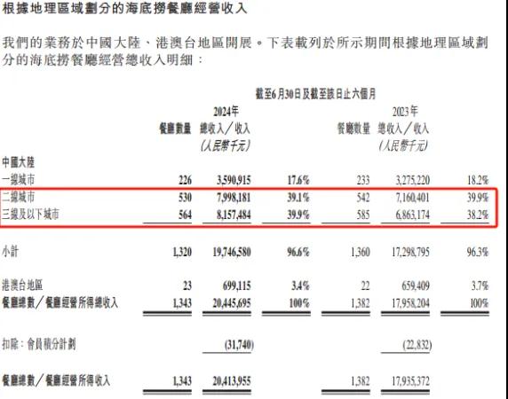 海底捞的营收,三线城市挑大梁