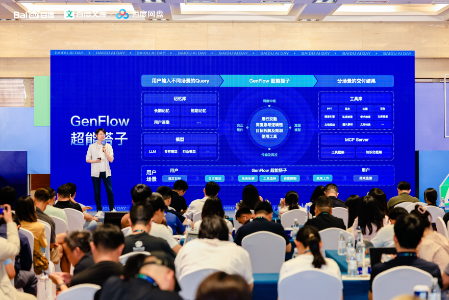 沧舟OS可对海量公域内容如文库公域数据库、用户授权使用的网盘存储的私域内容、以及用户记忆库的内容等进行全链路处理,还可以通过GenFlow调度中枢实现Agent之间的数据互通和智能调度,整合文库网盘百余项能力及第三方MCP server能力,灵活匹配各种用户需要,最终实现全模态交付,端到端满足需求。