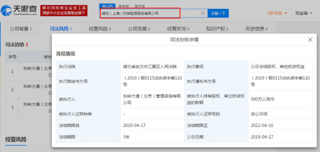 4月18日消息,天眼查数据显示,继ofo退押金难风波之后,ofo运营主体东峡大通(北京)管理咨询有限公司不断被法院列为被执行人,截止目前,该公司被执行信息已高达126条。据天眼查数据显示,近日,ofo被冻结旗下两家公司所持股权,公司分别为:绿觅(上海)机械租赁服务有限公司和共享电车“智客出行”的运营主体——成都智客出行科技有限公司。