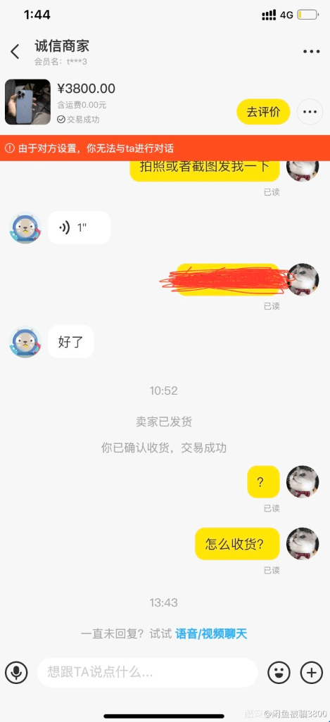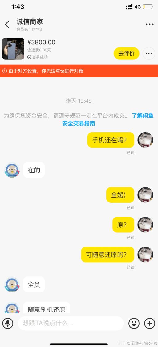 这老哥把昵称都改成了闲鱼被骗 3800