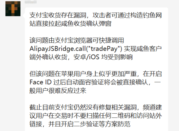 然而在我们尝试复现代码流程的时候,发现支付宝在第一时间已经把这个 Bug 给修复了,没办法重现最后自动“确认收货”的流程。