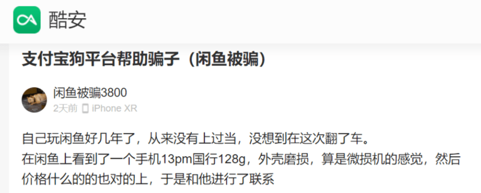 酷安:@闲鱼被骗3800