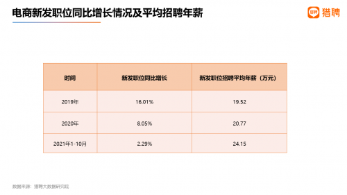 一、电商新发职位招聘平均年薪为24.15万元,直播为21.30万元