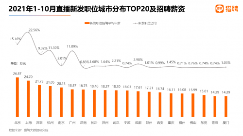 三、上海直播职位排名第一,北京直播职位薪资最高