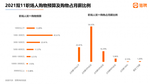 七、超2成职场人双11购物预算为5000元以上,超5成人购物开销占月薪30%左右