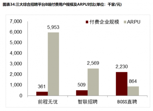 中金公司认为,求职端思维给互联网招聘带来的破坏性效应或类似抖音等短视频平台对视频产业带来的效应,其预计,随着求职端思维平台网络效应提升,用户规模提升,粘性增强,推荐精准度提升等一系列技术进化,BOSS直聘有望逐步达到中大型企业的招聘需求,从而抢占企业端思维的市场。