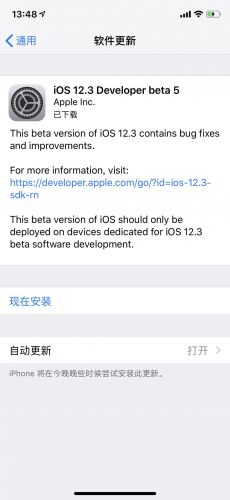 【TechWeb】5月8日,在谷歌发布Android Q的同时,苹果也推送了ios12.3 Beta5版本。开发者和公测用户均可下载升级。