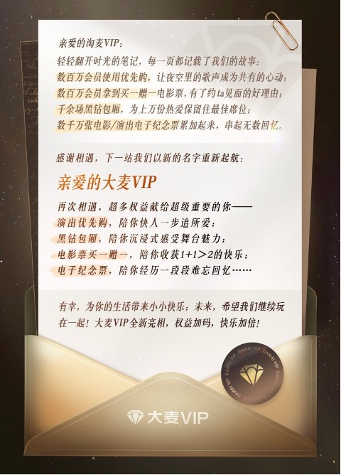 大麦娱乐旗下“淘麦VIP”升级为“大麦VIP” 持续加码会员权益快讯