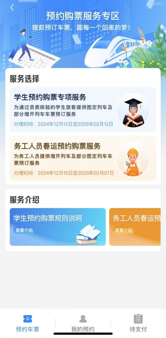 对于春运返乡的两大群体务工人员和学生,铁路12306此前已经上线了学生和务工人员预约购票新功能。