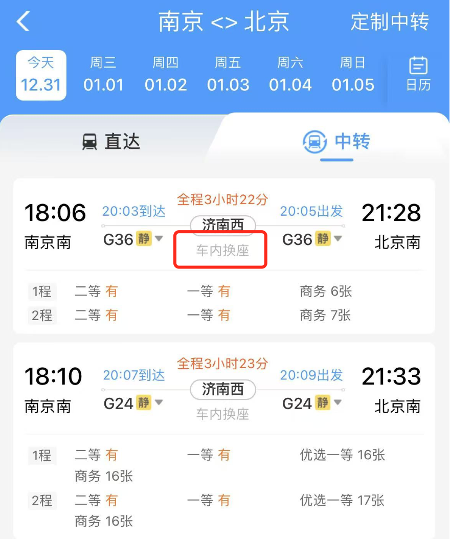 12306客户端有“直达”和“中转”两个选项,平台会根据旅客出行需求和余票情况,智能推荐有余票的中转换乘方案。