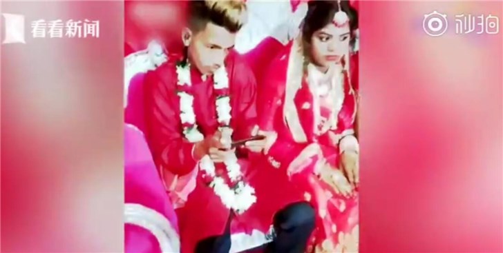 新郎竟然全程低头专心致志打,因此该游戏在印度多地被禁,只能无奈地看着新郎玩游戏。
