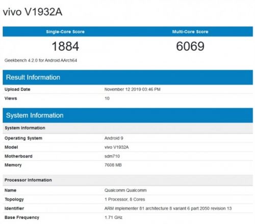 vivo S5跑分现身GeekBench数据库:OLED挖孔屏+屏幕指纹识别首次合体快报