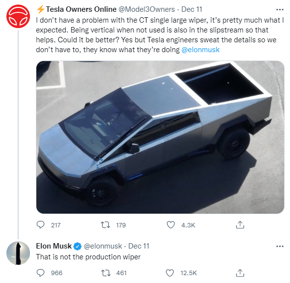 马斯克还回复Twitter网友表示,、这款超大型雨刷并非最终量产版。