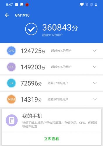在主流的跑分软件安兔兔中,一加7 Pro得到了360843分的高分,在跑分排行榜上也属于前列。当然,实际的性能表现还是要靠实际的游戏体验来表现,这一方面我们将放在下面的游戏体验部分来进行详细的介绍。 一加7 Pro针对游戏进行了全面优化升级,全新的Fnatic电竞模式为游戏带来更为流畅的沉浸式游戏体验。当你打开游戏,就会弹出一个提示框开启游戏模式,对于游戏画面进行增强,同时还能免提接听来电,屏蔽通知栏消息,真正为玩家带来沉浸式游戏体验。