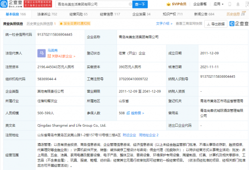 企查查信息显示,尚美生活是一家国际化酒店连锁集团,以自有资金投资、商务信息咨询、企业管理信息咨询、经济信息咨询等。