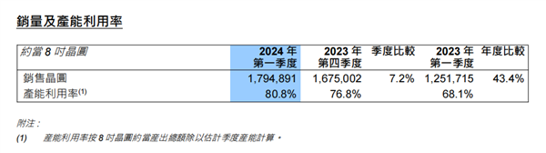 同时中芯国际的月产能也有所增加,从2023年第四季度的80.55万片8英寸晶圆约当量增至2024年第一季度的81.45万片。