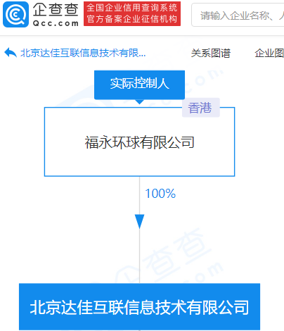 企查查信息显示,该公司成立于2014年,法定代表人为杨远熙,经营范围包含:动漫模型设计、电脑动画设计;经济贸易咨询;教育咨询;企业管理咨询等,由福永环球有限公司100%控股。