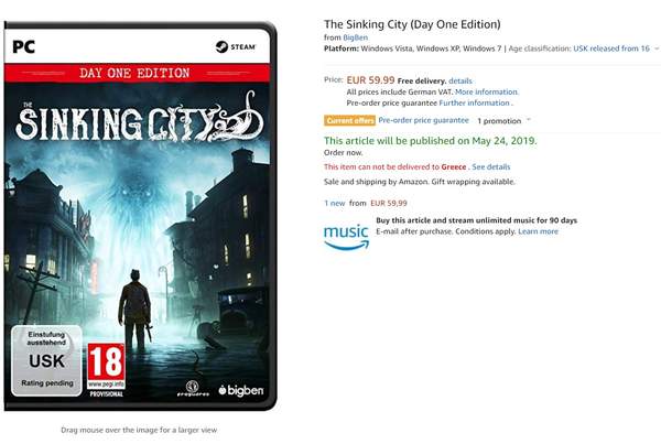 《沉没之城》是Frogwares Games工作室开发的一款“克苏鲁”风开放世界探索游戏,该作原定于今年3月21日发售,可是据亚马逊商城页面显示,本作将跳票至5月24日发售。