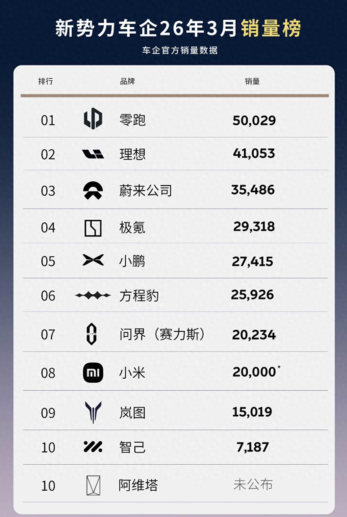 3 月销量出炉,理想汽车交付了 4.1 万辆新车,环比增长了 55%,在新势力里仅次于零跑的 5 万辆。