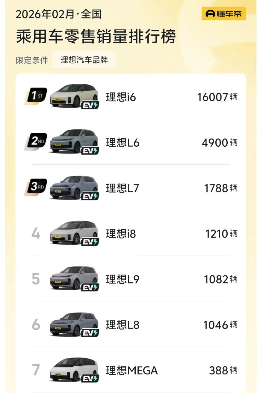 如果我们再把 L6 加上去的话,参考 2 月份的销量,一共交付了 26,421 辆新车,其中 i6 卖了 16,007 辆,占总销量 60.6%,理想 L6 卖了 4,900 辆,占总销量 18.5%。