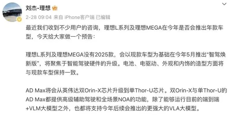 有车主表示,看了(理想汽车副总裁)刘杰的微博,说升级不会有很大的变化,所以才想3月22日购买。“结果焕新款出来后我们max车主最接受不了,电池续航变大,双腔空气悬挂等等。如果微博不这样写销售不这样解释,我们会买24款吗?就差一个月新款上市,而且价格基本一样。”