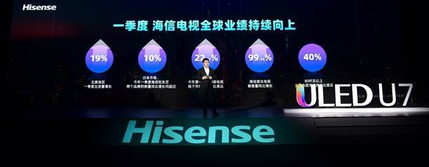 出色的产品竞争力为海信在逆境中赢得良好业绩。一季度海信海外销售数据显示,海信电视在百思买、电商平台亚马逊等渠道的销售额大幅增长,继续保持着高速增长的势头。北美地区一季度出货量增长19%。在日本市场,海信和东芝两个品牌的销量同比增长均超过10%;在中国,今年第一季度海信电视线下市场份额占比高达22.77%,较第二名大幅领先,海信激光电视销售量同比增长近100%,在80吋及以上大屏电视市场的占比接近40% 。