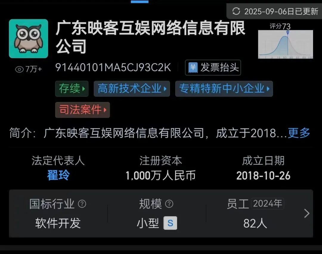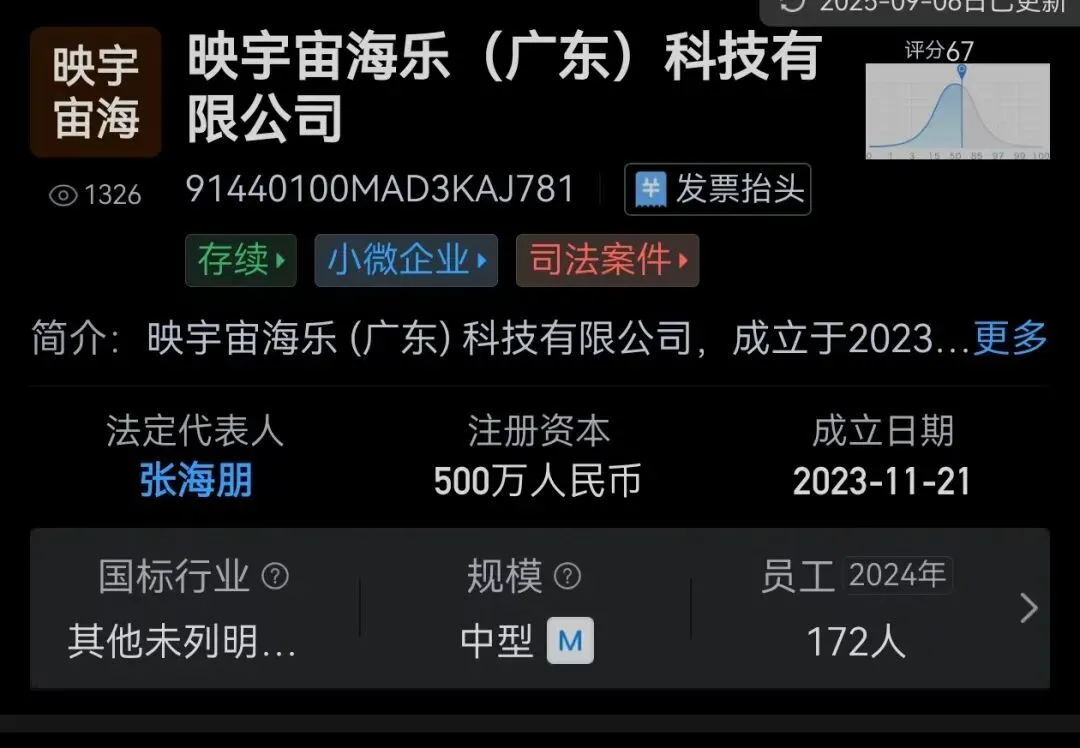 映宇宙海乐(广东)科技有限公司成立于2023年11月,注册资本500万元人民币;由Inke HongKong Limited全资持股。