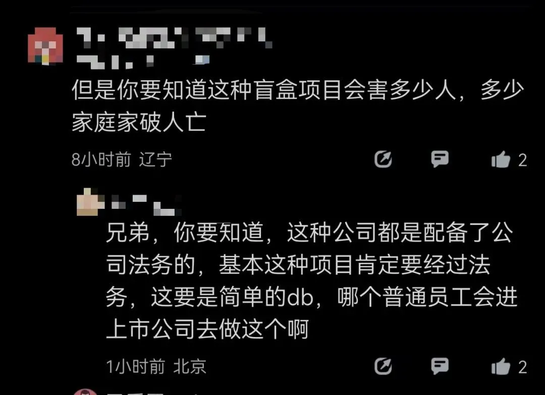 然而到了2024年9月,员工们得知所做的盲盒项目涉嫌违法,随后近50名涉案员工被抓进看守所,同时可能面临处罚和判刑。