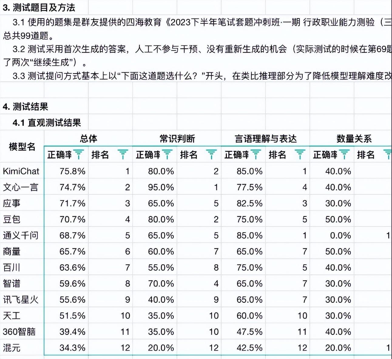有网友不相信尬吹的评测和标准测试集,专门选取了公务员考试的99题行测试题对主流大模型进行测试,结果发现不论是常识判断还是言语理解,都“遥遥落后”于其他的大模型。并且混元大模型在一些基本的语言任务上,如文本摘要、文本校对、文本生成等,表现出了明显的逻辑错误、语法错误、语义错误、事实错误等问题,导致生成的内容质量难以满足用户的需求。