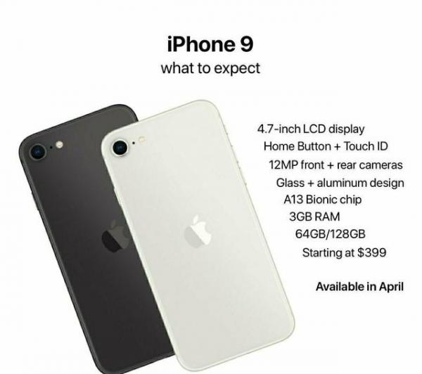 存储上面,iPhone 9有两种选择,分别是64GB和128GB。iPhone 9的外观和iPhone 8差不多,不是全面屏的设计,而是带Home键的苹果的经典设计,有额头有下巴。后置摄像头是单摄,据说是1200万像素。前置摄像头也是1200万像素。其他功能上面还会支持无线充电,touch ID等等。总的来说,除了A13芯片,其余都是一款中端机的配置。
