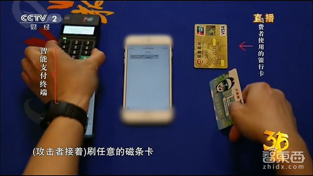 如果前面提的几条还只是个人隐私的泄露,下面演示的这款智能POS就是要你的钱了。在央视拍摄的视频演示中,消费者使用自己的银行卡在有问题的智能POS机上消费后,不法者可以轻易用另外的磁卡代替刷卡消费,但钱确实前一张消费者的银行卡中划走的。