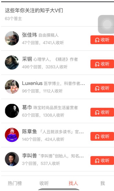众所周知,名人都很忙,大咖也是如此,各种时间和档期都很有限。于是我们不可能近乎免费就得到大咖的回答,但是,当一种新模式催生出来的时候,这种以前认为“不可能”的事也变得可能起来。你可以提问大咖,可以选择感兴趣的问题“偷偷听”近乎免费的建立知识网红的仪式感,答主与提问者皆可获益。
